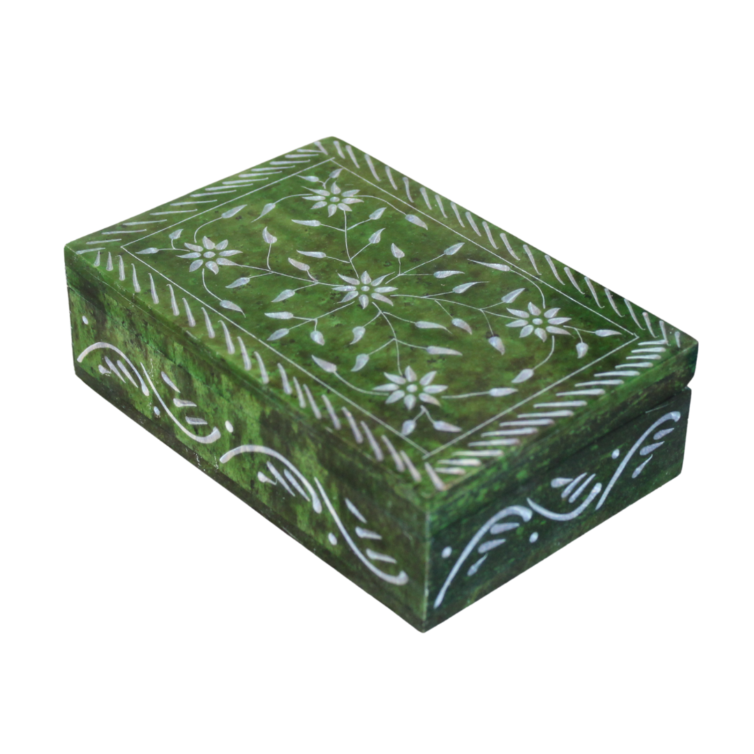 Whether you're organizing treasures or gifting something special, this green floral soapstone box brings harmony, craft, and beauty to every use.